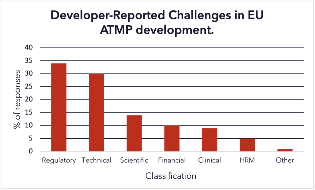 Figure 1. Developer-reported challenges in the European ATMP development. Industry questionnaire in Europe (based on Ten Ham et al., 2018).